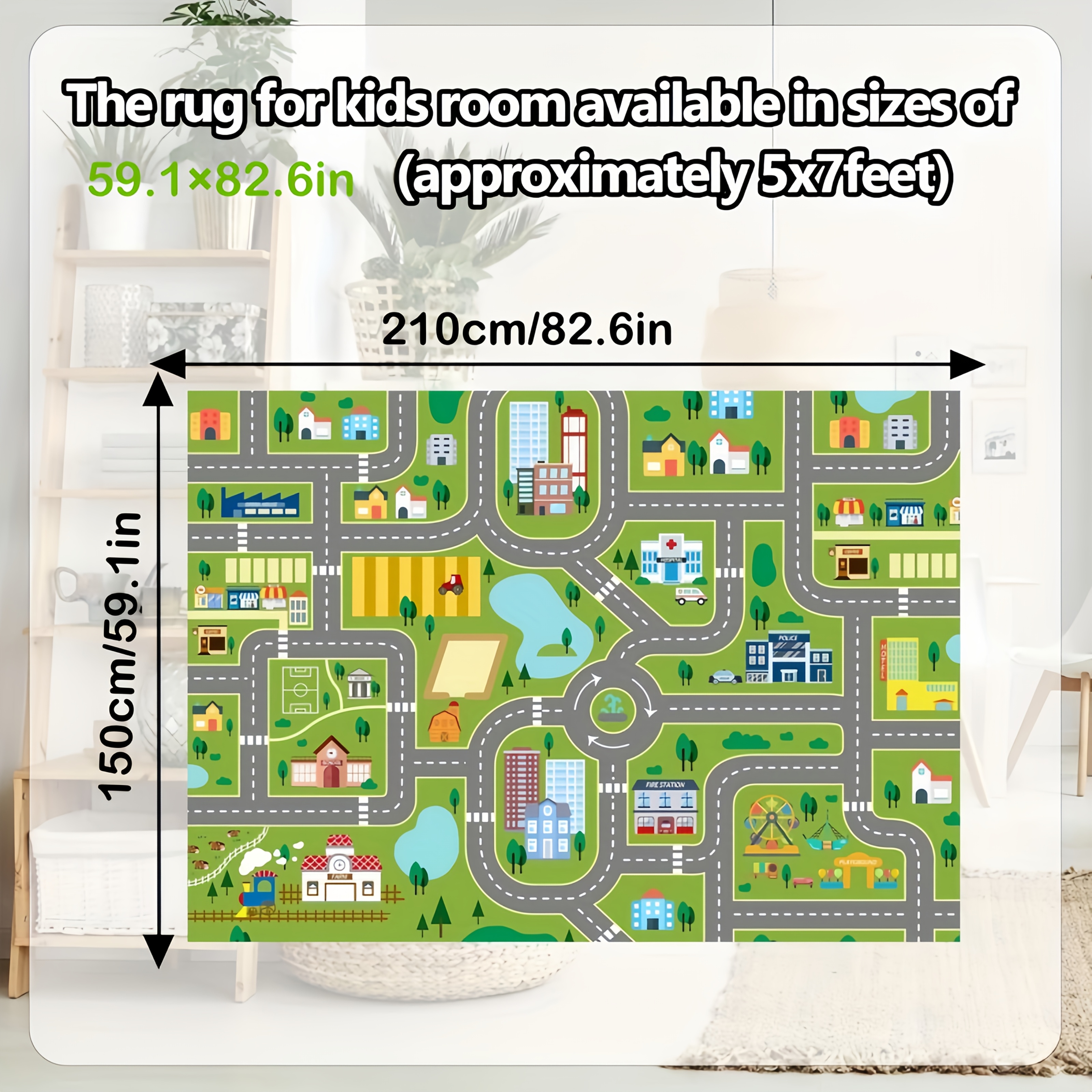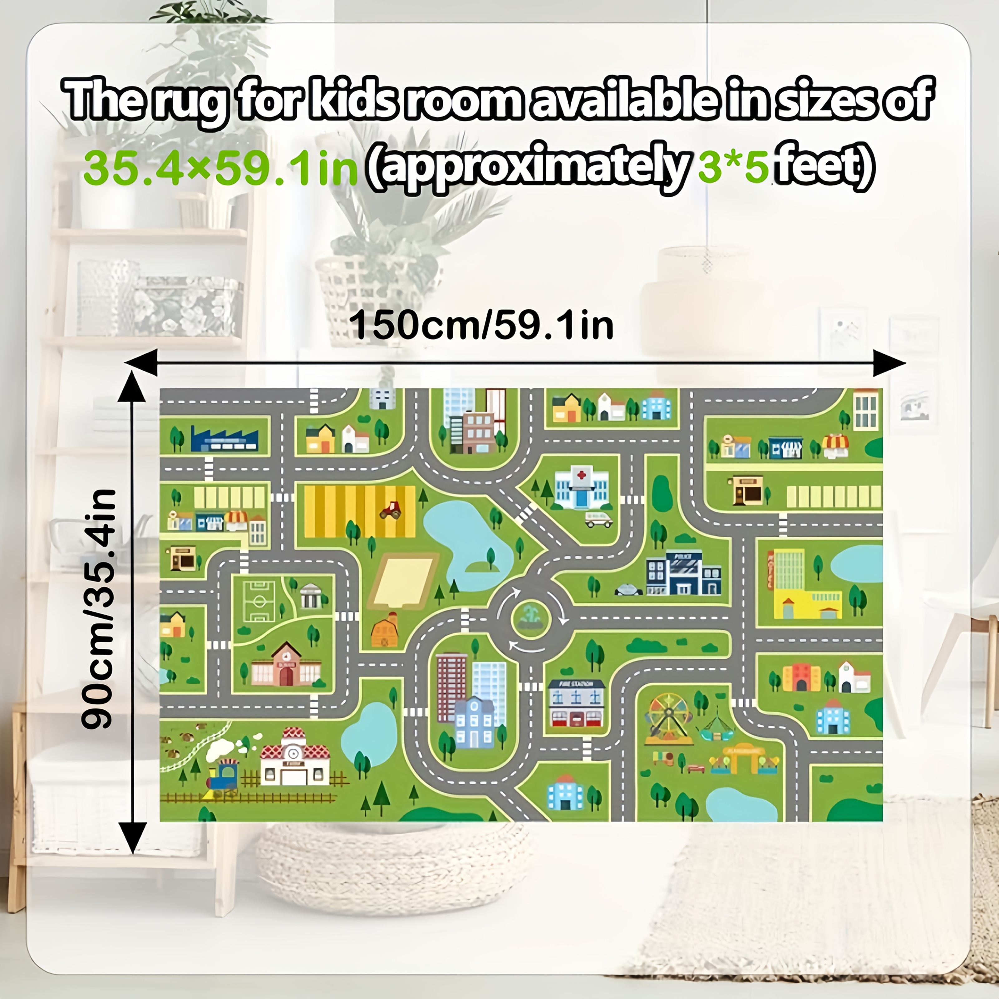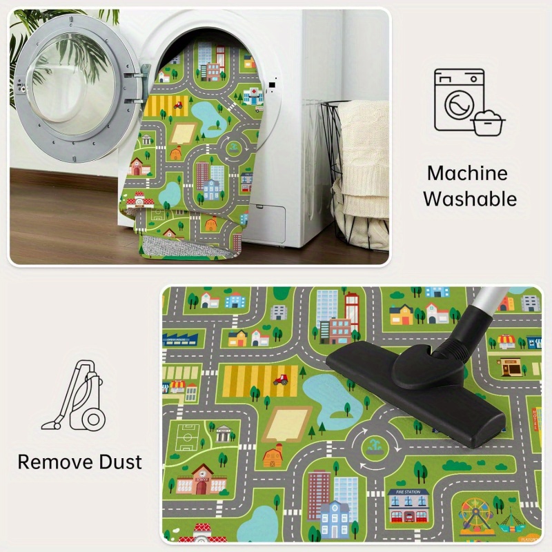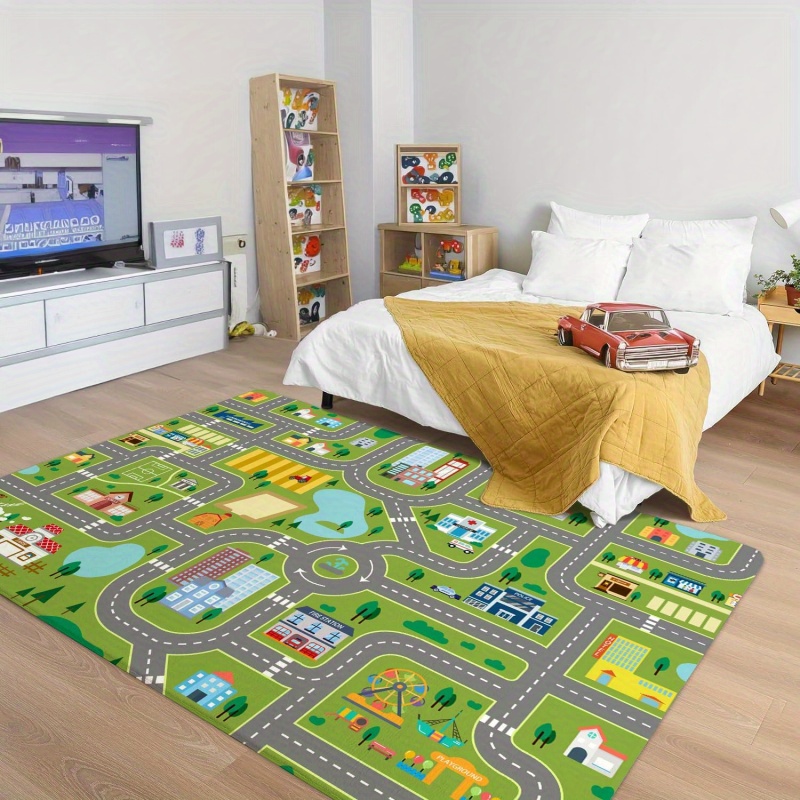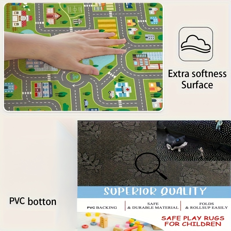 Dieser große Spielteppich ist ideal, um Kindern kreatives Spielen, Verkehrsverständnis und Rollenspiele auf unterhaltsame und sichere Weise näherzubringen.