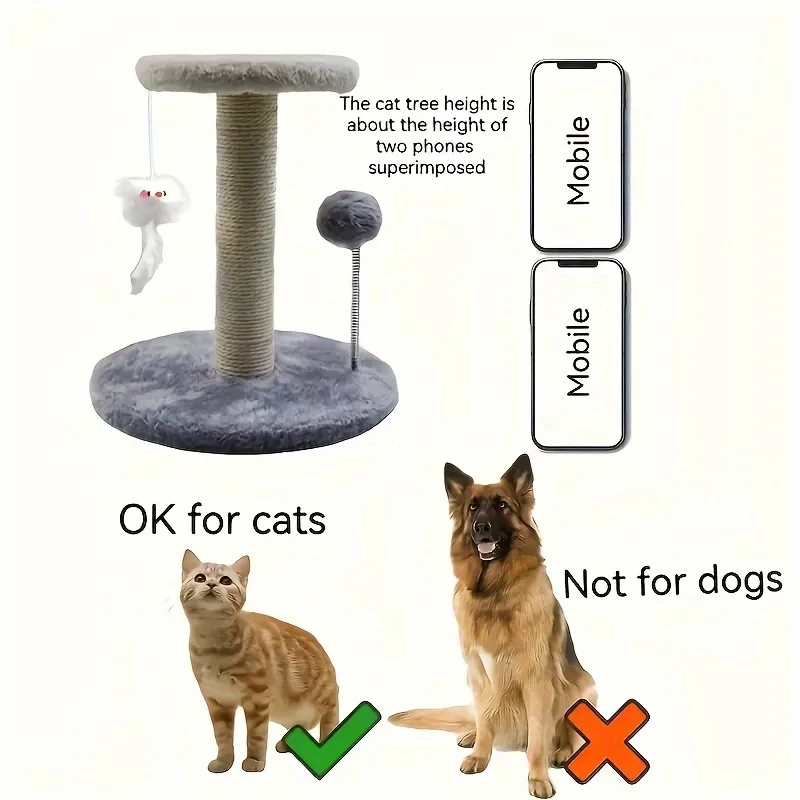 KEMORELA Kratzbaum mit Spielzeug – Kratzpfosten mit Ball & Plüschmaus | Spiel- und Kratzcenter für Katzen