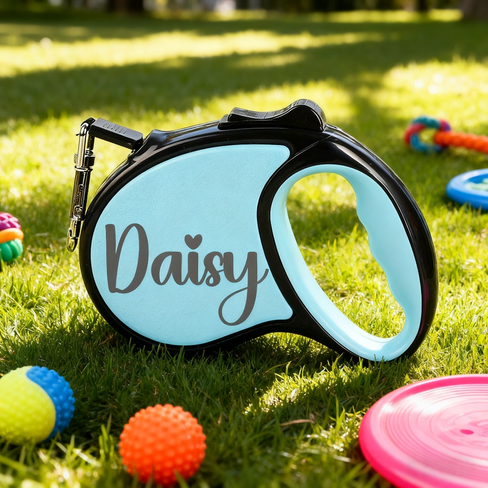 Erlebe bequeme Spaziergänge mit unserer Custom Name Retractable Dog Leash! Die robuste Leine aus strapazierfähigem PP-Material verfügt über einen 16-Fuß (4,88 Meter) langen Nylonriemen und ist ideal für kleine bis mittelgroße Hunde und Katzen.