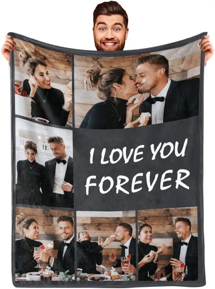 Mach aus Erinnerungen etwas zum Einkuscheln! Unsere personalisierte Foto-Collage-Decke mit eigenem Text ist das perfekte Geschenk für Familie, Freunde oder für dich selbst. Ob Fotos von geliebten Menschen, Haustieren, Reisen oder besonderen Momenten – kombiniert mit deinem Wunschtext wird daraus ein einzigartiges Andenken.